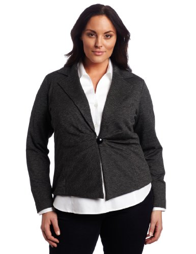 Knit blazer replacement.../ AK Anne Klein Women's Plus Size Knit Jacket, Black/Sugar, 2X / Plus Jackets
